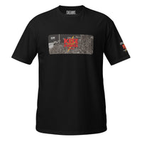 Retro utility logo on front, bold blackout graphic on the back.
